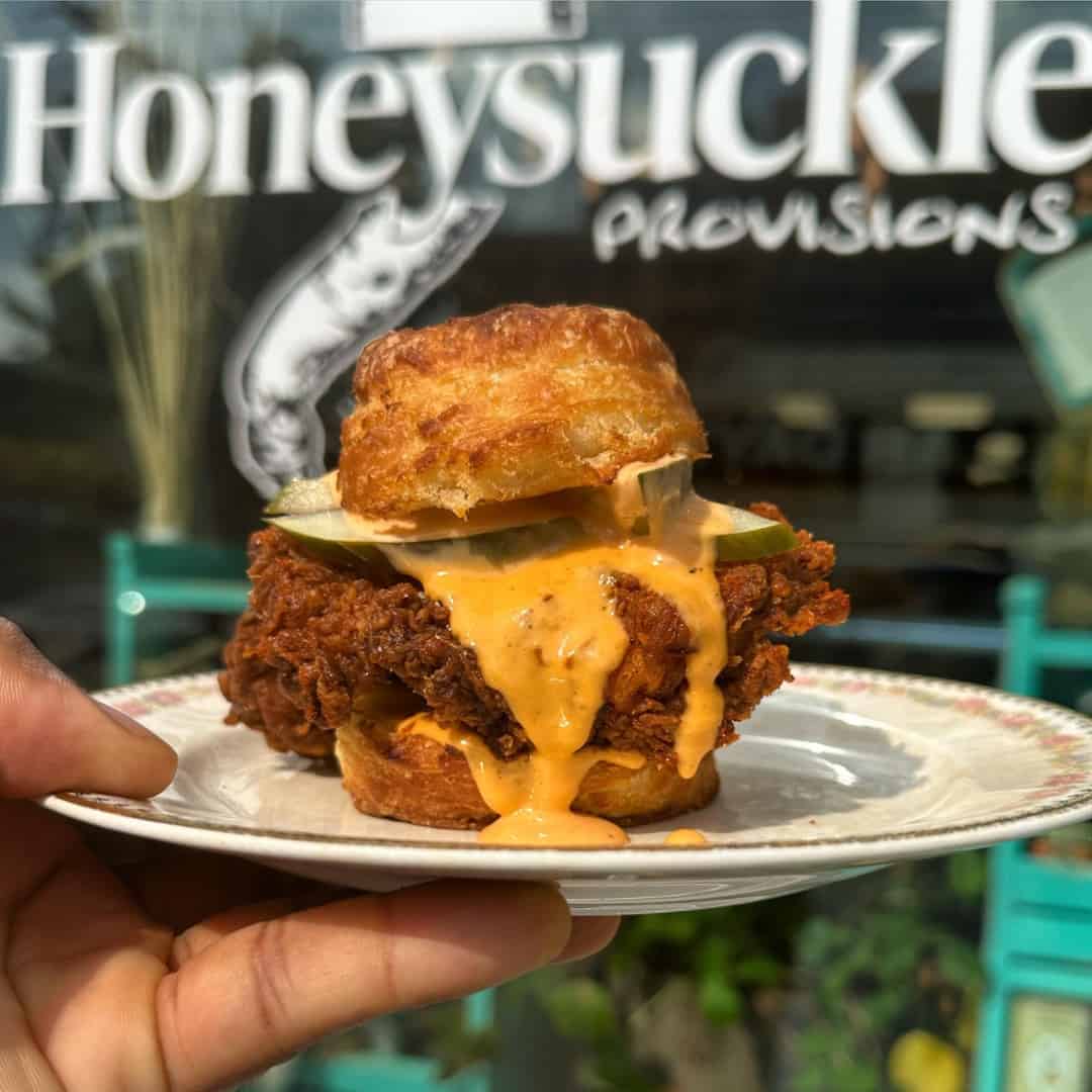 Begin your exploration at Honeysuckle Provisions, an Afrocentric grocery store and all-day café that effortlessly blends culture, community, and cuisine. The moment you step inside, you’re greeted by the warm embrace of soulful tunes and the intoxicating aroma of carefully crafted dishes. Dive into a symphony of textures and flavors with Honeysuckle’s signature Fried Fish Hoagie. Crispy, golden-brown fish is tucked into a fresh hoagie roll and adorned with vibrant toppings, creating a sandwich that’s as visually appealing as it is delicious. And savor the succulence of perfectly fried chicken sandwiched between pillowy-soft biscuits.
