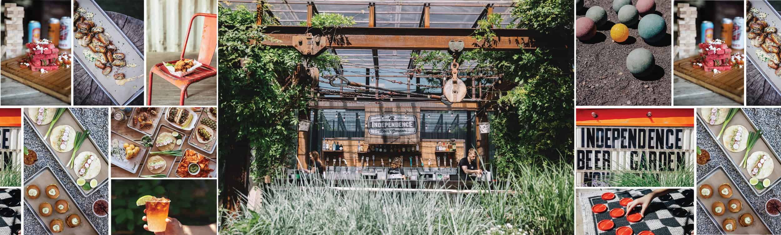 Independence Beer Garden Located just steps away from Independence Hall, Independence Beer Garden offers a spacious outdoor patio surrounded by historic landmarks. Choose from an extensive selection of craft beers and American comfort food classics as you soak up the sunshine and soak in the city’s rich history.